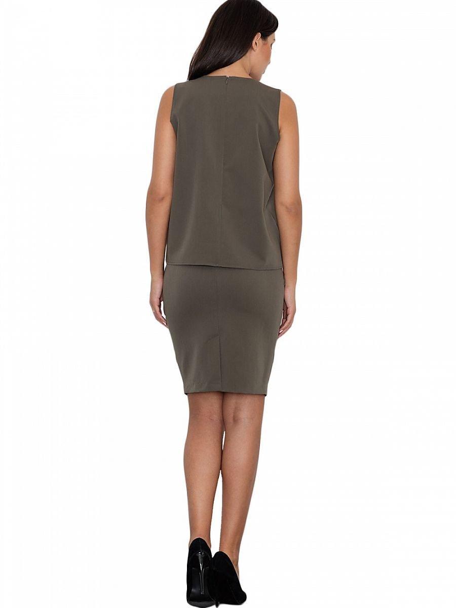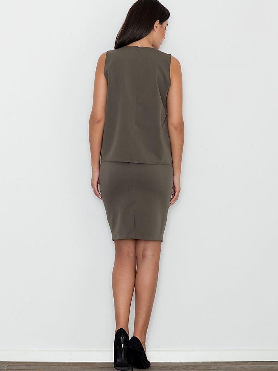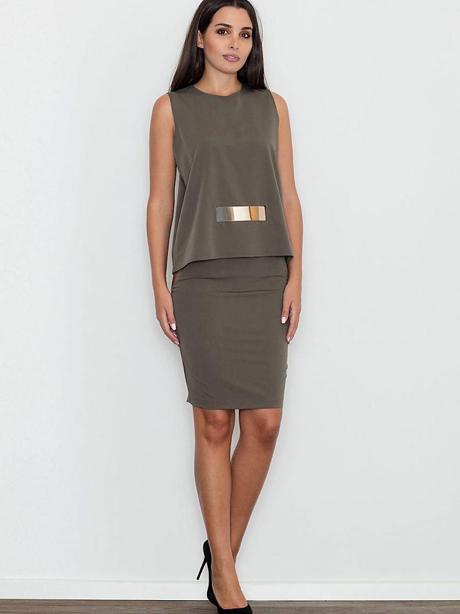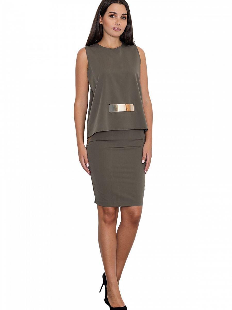 Elegant set in a simple version. A blouse with a decorative gold accent adds chic and modernity. Skirt fitted before the knee with eco-leather inserts, covered zip. The set is perfect for many occasions of the day and evening.