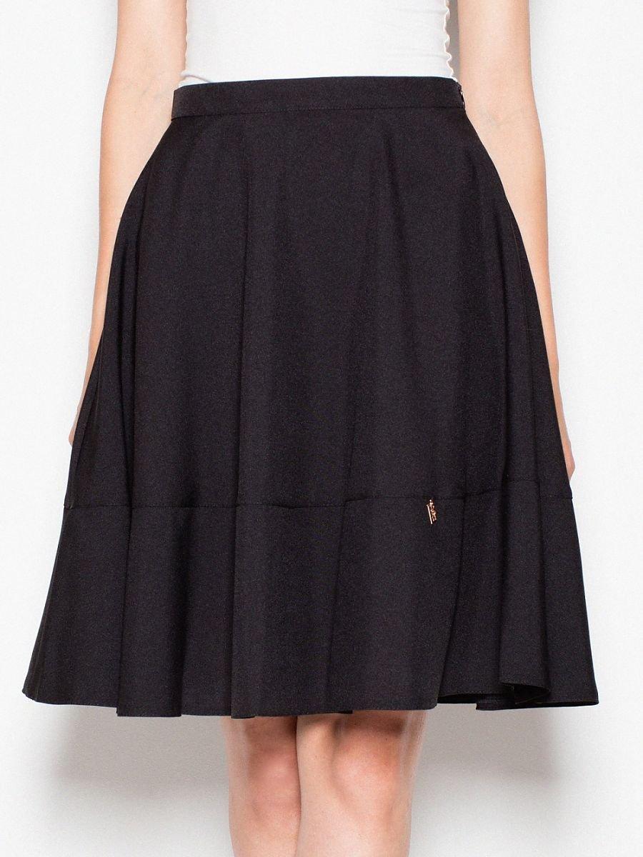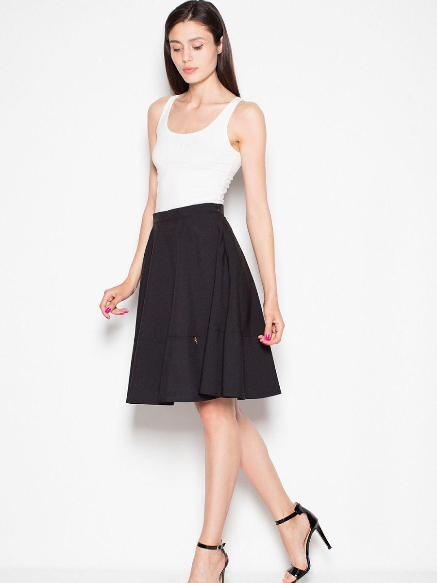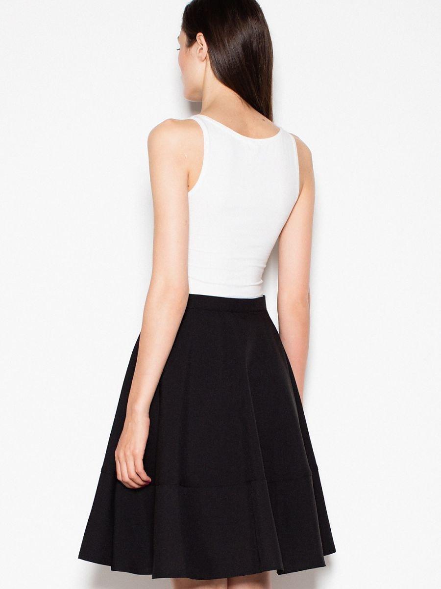 Model on a wide belt, cut off at the height of the hips. Pleats below giving a very feminine effect. Universal proposition perfectly matching to the shirt and T-shirt.