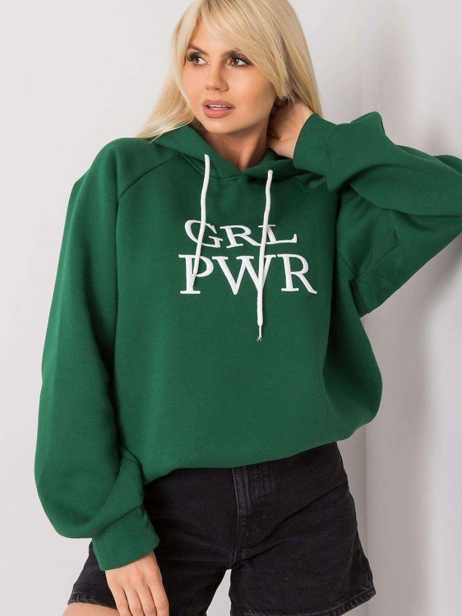 Green oversize sweatshirt with hood. Perfect for everyday wear.