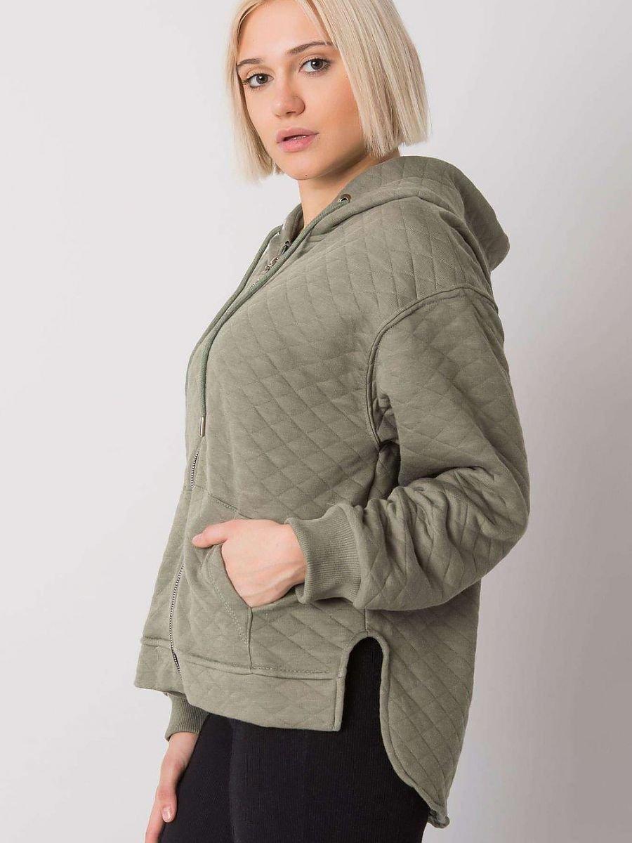 Ladies' sweatshirt made of quilted fabric, with a zip. Hooded sweatshirt with slip pockets at the front.