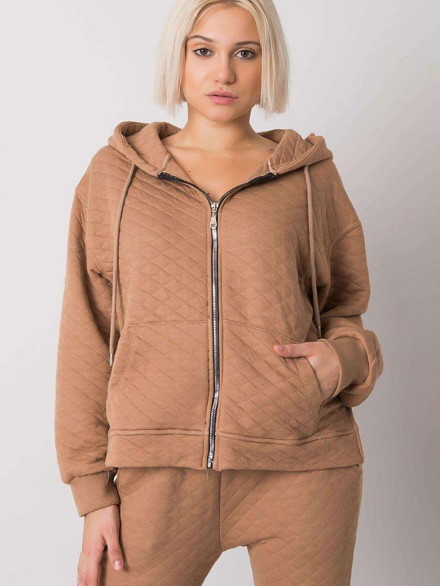 Ladies' sweatshirt made of quilted fabric, with a zip. Hooded sweatshirt with slip pockets at the front.