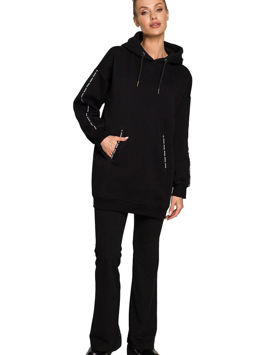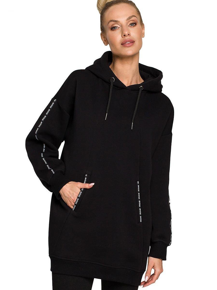 We love making tunics because they have so many uses, you can wear them as a dress with tights or leggings, or as a longer top with jeans. This unique tunic is a real statement piece. Comfortable length and interesting design with lampas with moe brand logo, and all made of extremely nice and warm sweatshirt knit with a soft fleece underneath.