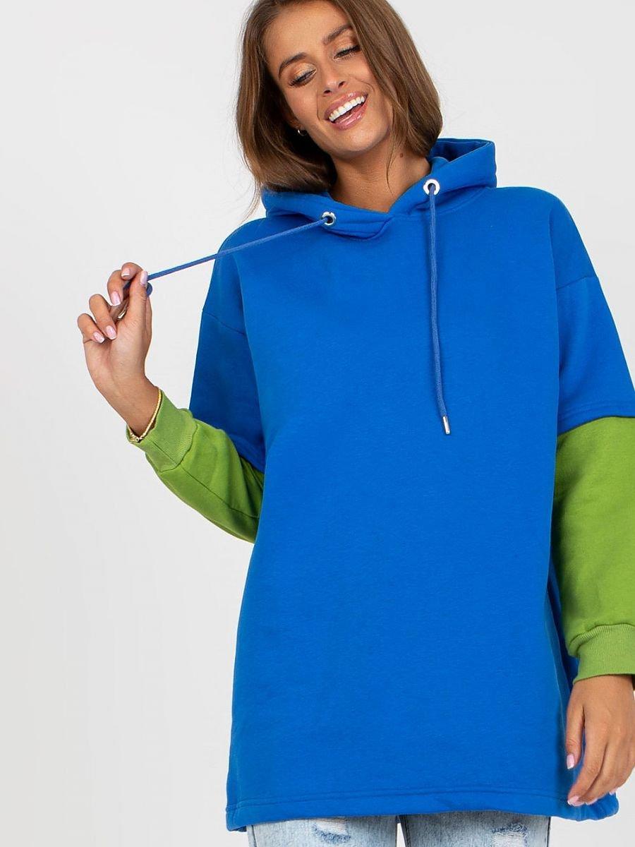 Women's sweatshirt with an extended cut, long sleeves and a hood.