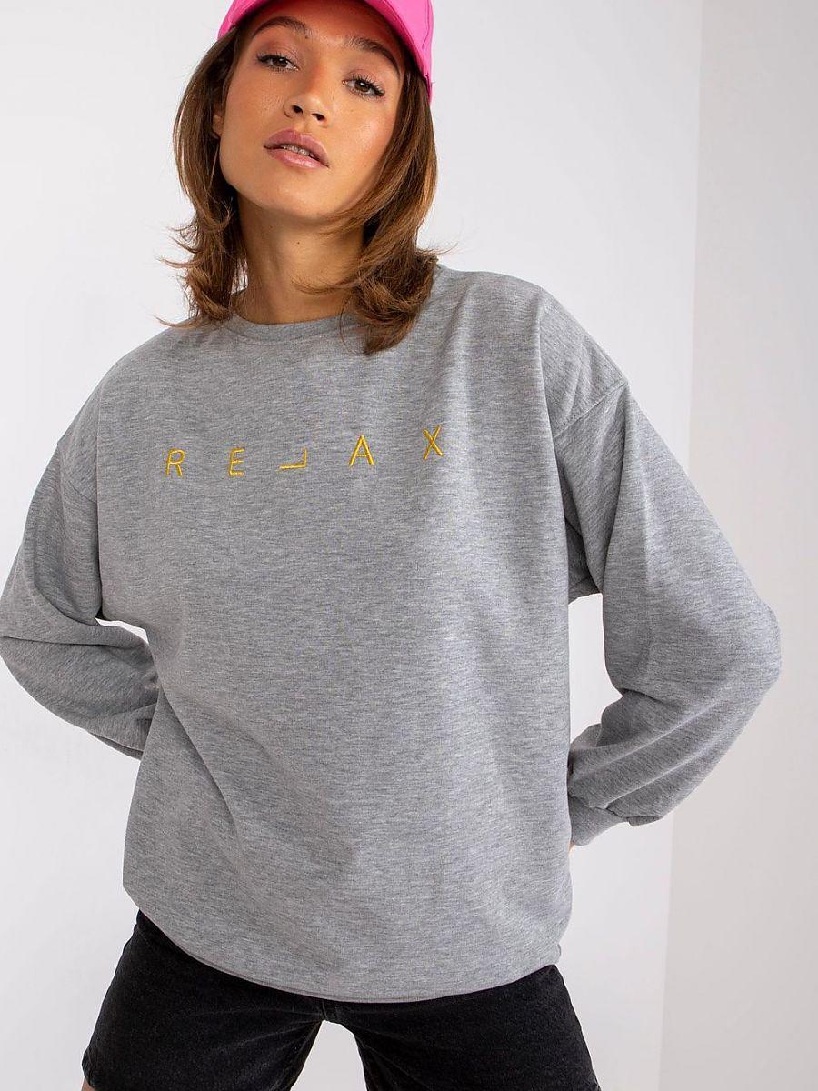 Ladies' blouse with long sleeves and round neckline. Decorative embroidery on the front.