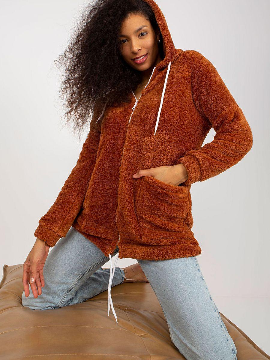Fur warm zip-up sweatshirt with hood. The sweatshirt has large sewn-in slip pockets.