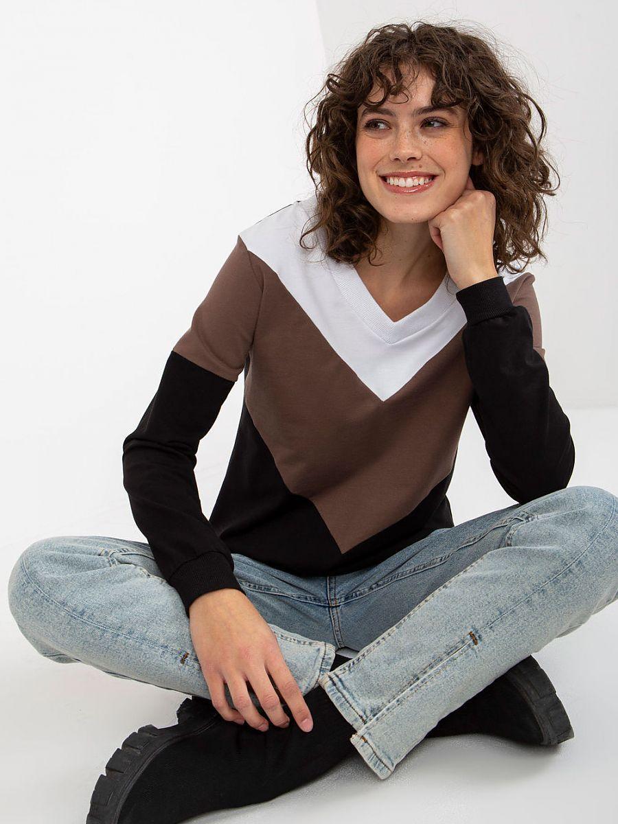 Women's sweatshirt with long sleeves and a heart neckline. The sweatshirt is made of fabric in three colors.