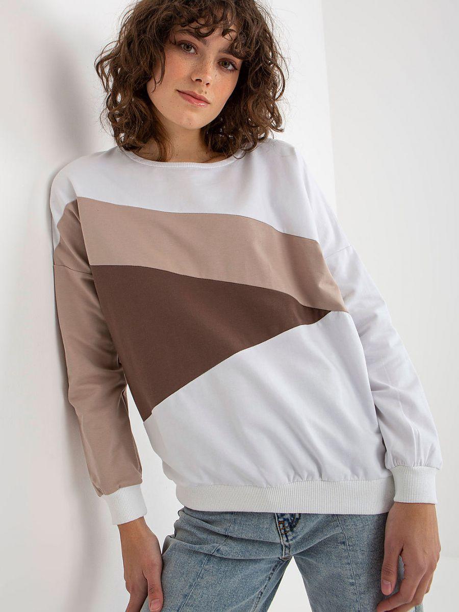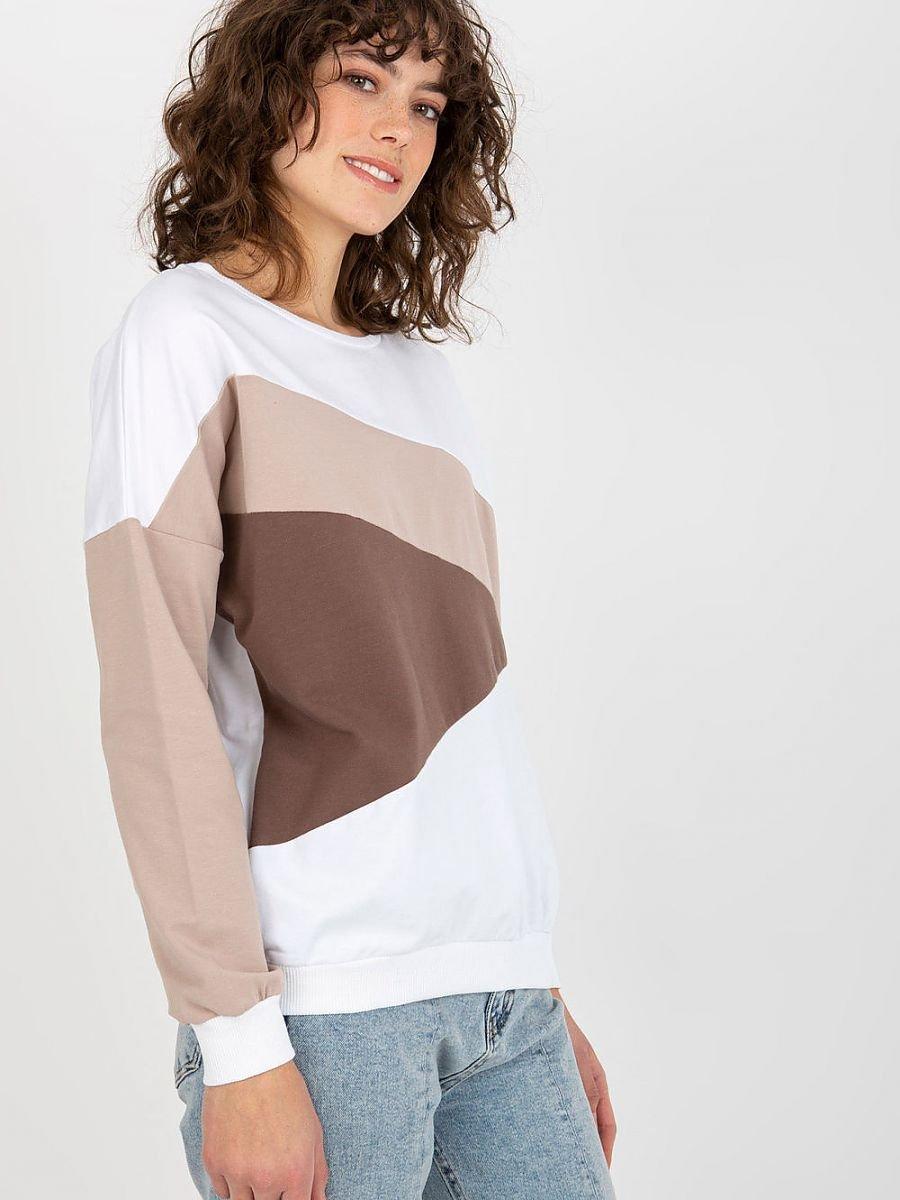 Women's sweatshirt with long sleeves and round neckline. The sweatshirt is made of fabric in three colors.