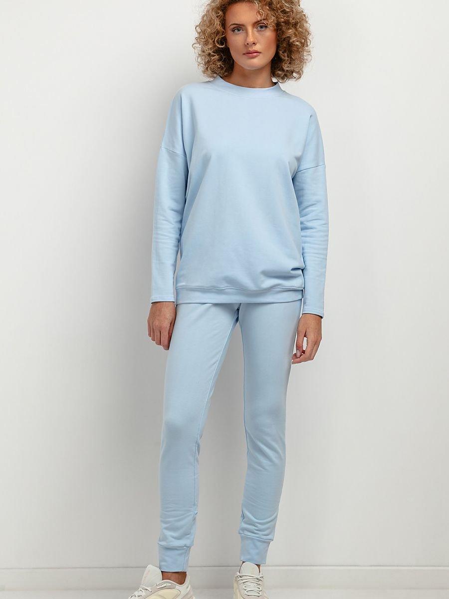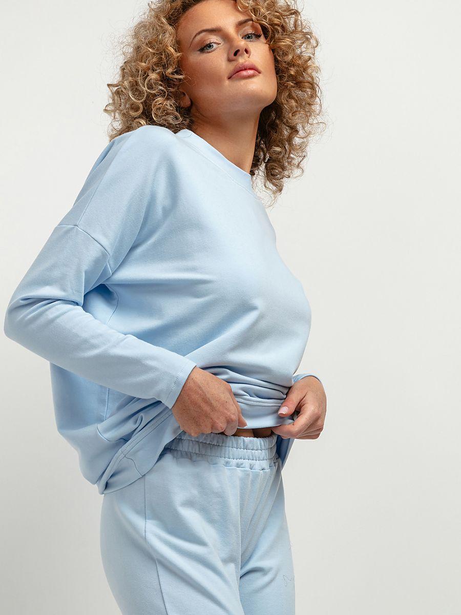 A simple sweatshirt made of soft knit fabric is a great choice for women who value comfort and reliability. The classic cut with details such as a delicate stand-up collar, the hem of the sleeves and the ribbed bottom of the sweatshirt give it an unconventional elegance and the possibility to style it in many ways. The sweatshirt is sewn from OEKO-TEX Standard 100 certified knit fabric.