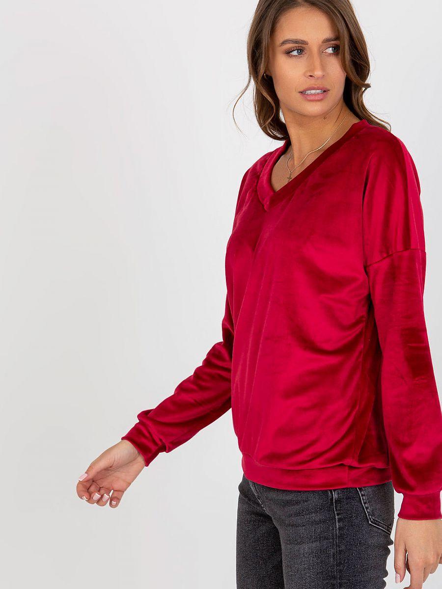 This velour sweatshirt is the perfect choice for everyday casual styling. Made of soft material, it provides comfort and a pleasant feeling on the skin. The smooth design makes it versatile and fits a variety of outfits. Its standard length and long sleeve make it suitable for many occasions. The V-shaped neckline gives the blouse elegance and subtlety. It is an excellent choice for colder days when you want to feel comfortable and look fashionable at the same time.
