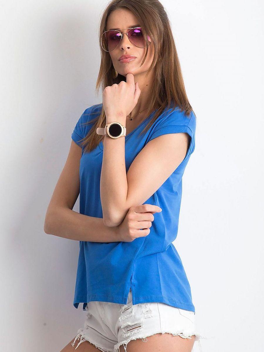 Smooth women's t-shirt with a v-neck is the most fashionable shirt of the season. In addition to classic t-shirts with round necklines, it is also worth having V-neck models in your closet, as they look equally stylish and additionally accentuate the bust. This basic t-shirt has traditional short sleeves and a comfortable cut that does not restrict movement and fits nicely on the figure. The whole thing refers to a minimalist style, but is not devoid of girly charm. This T-shirt is made of the highest quality materials, which are both breathable and pleasant to the touch and soft.