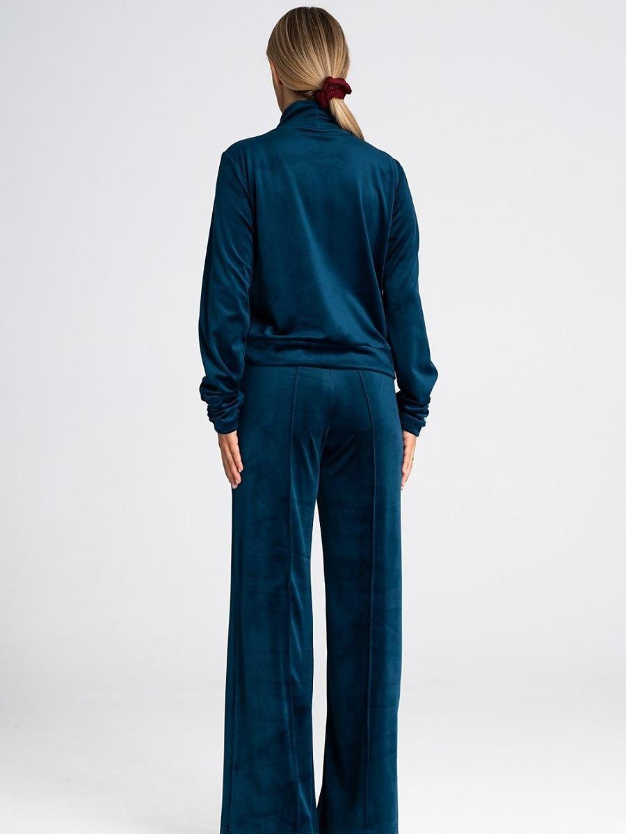 Women's bell-bottom pants. Made of velour with a high rise, which optically slims the waist.